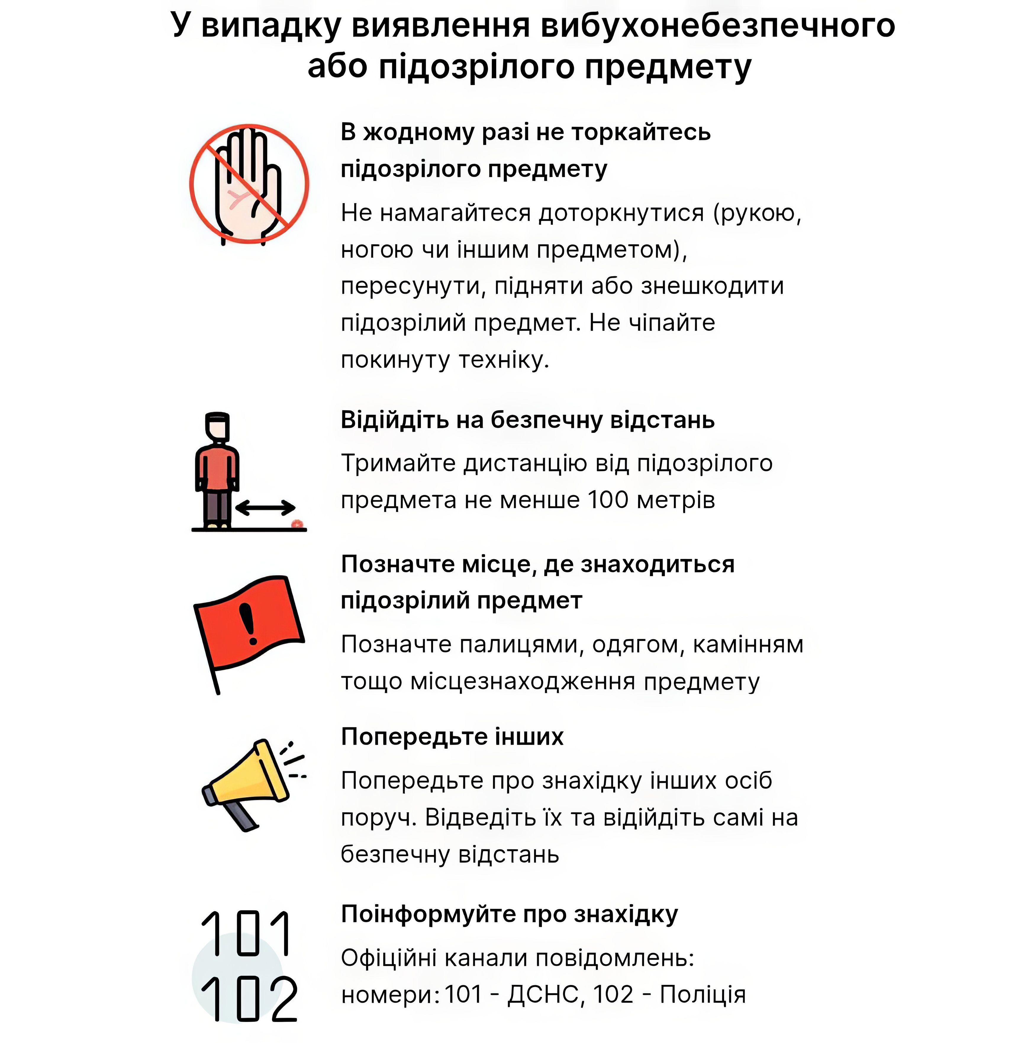 У випадку виявлення вибухонебезпечного або підозрілого предмету: